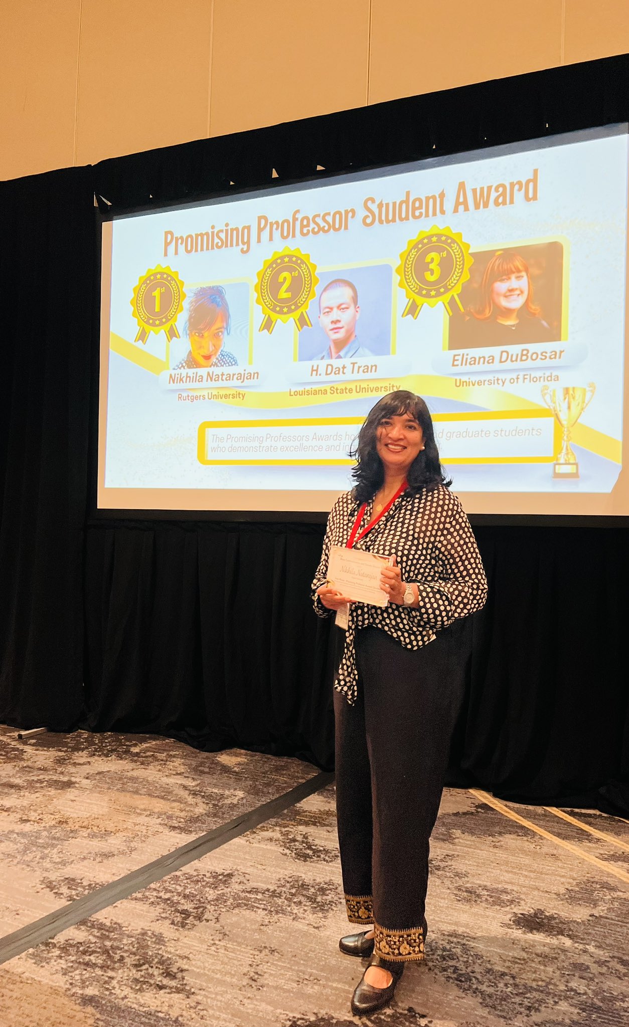 Starting with an ‘Outstanding Student’ award bestowed by the Media Studies faculty at the Rutgers School of Communication and Information (2023), I have been selected for three top awards that celebrate excellence in media scholarship. I won a best paper award from the Media Management and Entrepreneurship Division at the Association for Education in Journalism and Mass Communication (AEJMC) annual conference, 2023; and ‘Promising Professor’ first place award at AEJMC 2024, in Philadelphia. The New York State Communication Association conference (2024) has chosen my peer reviewed article published in IJoC as the top graduate student paper.